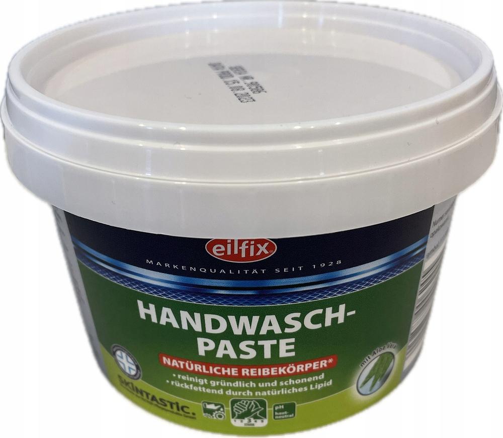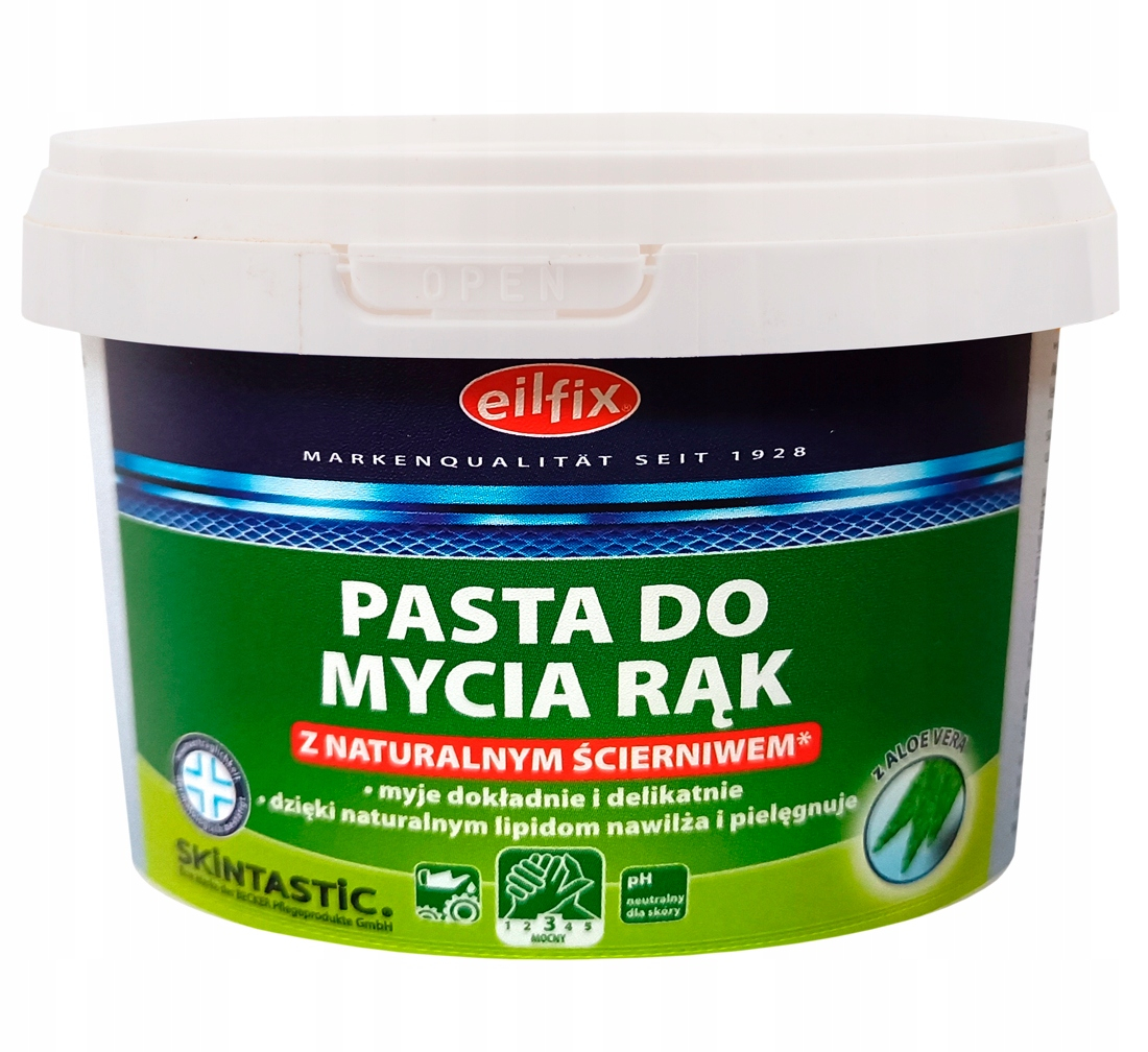 Se aplică pe mâini uscate, se masează până la desprinderea murdăriei, apoi se clătește.