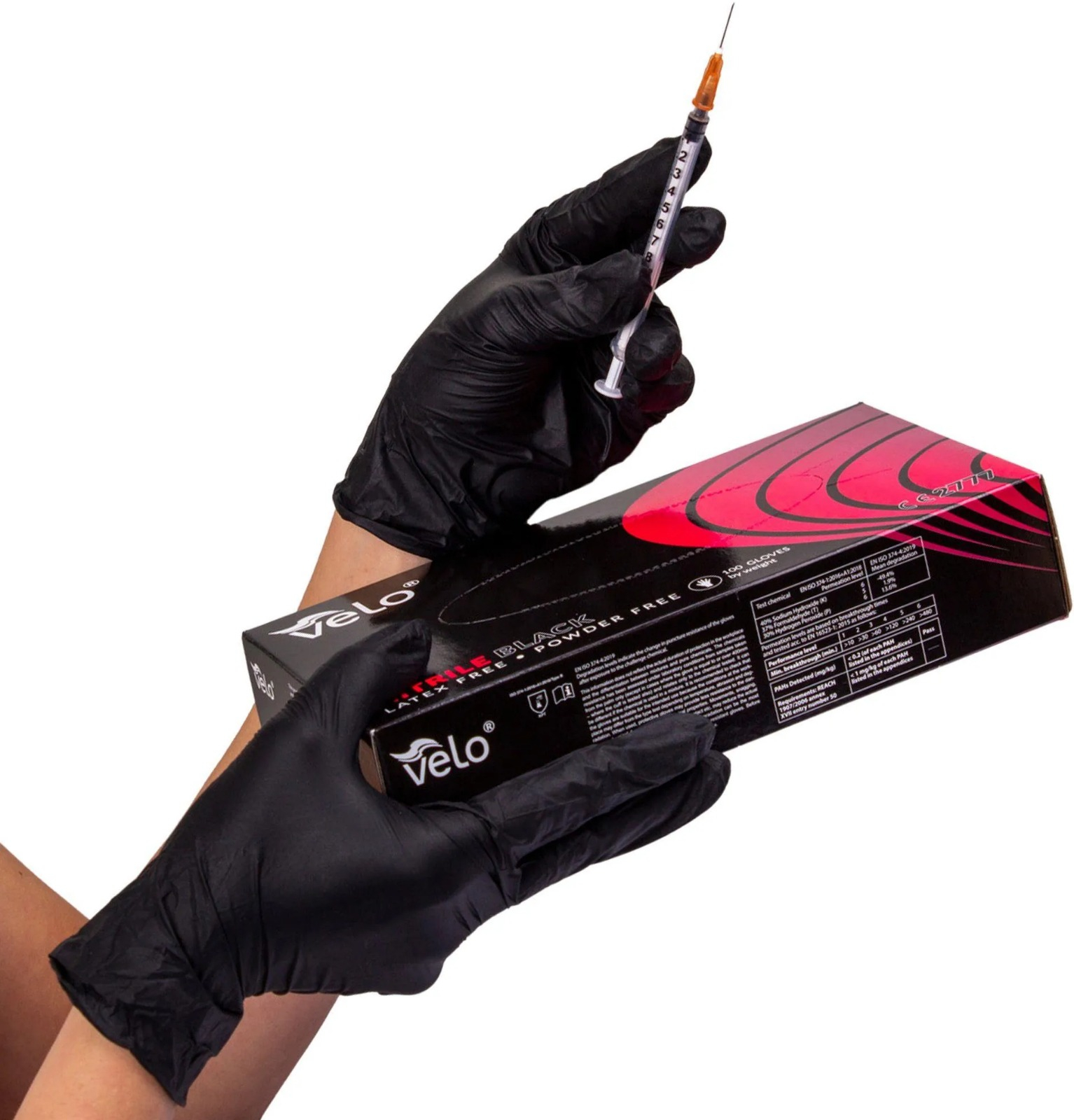 VELO Manusi examinare si protectie, din nitril, culoare Negru, marimea XL, marca Velo, fara pudra, cutie 100 buc